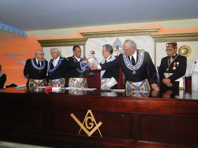 Irmão JOSÉ MARIA DE SOUZA MARTINS, Venerável Mestre AMARILDO ANDRÉ DE ARAÚJO e o Paster Master Imediato ANTONIO JAIME MACHADO DA SILVA CARNEIRO, no término da Cerimônia |